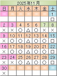 9:00〜12:00 | ○ | ○ | ○ | ○ | ○ | △ |